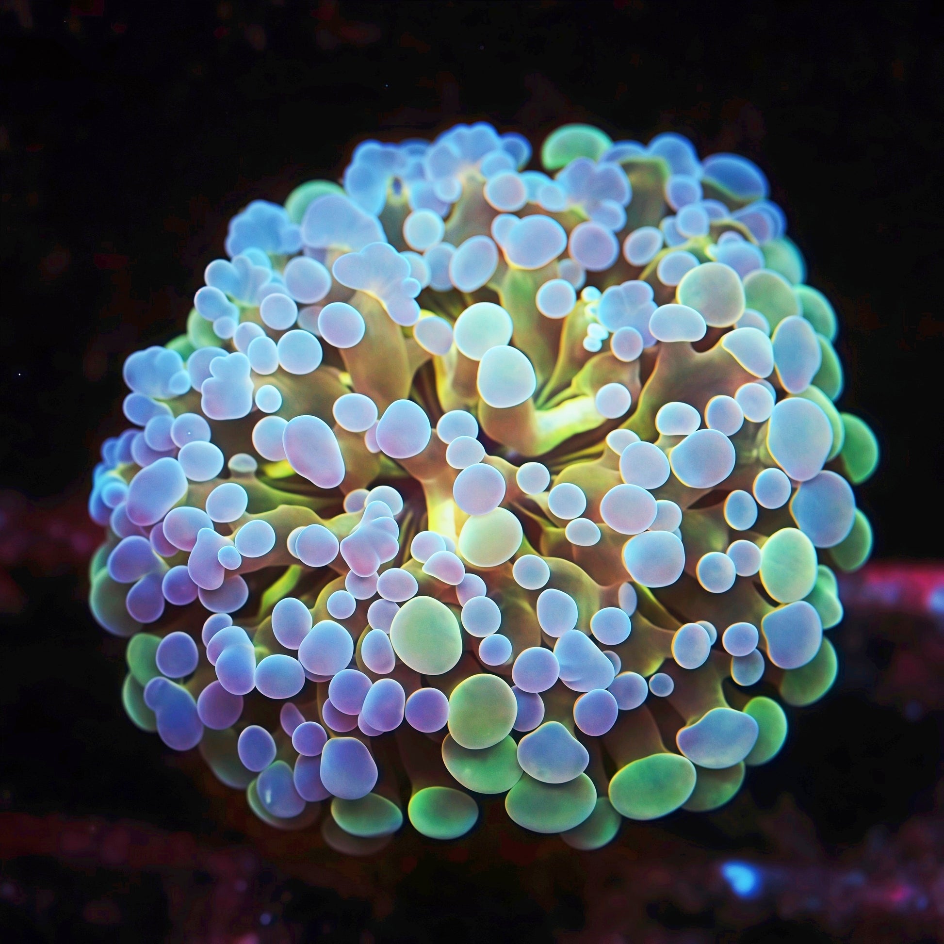 Photos taken under Actinic Radion Mobius (100% UV, 100% Violet, 100% Royal, 20% Blue) using Canon 90D + EF-S 60mm f/2.8 Macro. Color may vary under different lighting. Photo labeled with ÒStock ImageÓ ribbon shown for reference Ñ actual frag will be similar in color and size.