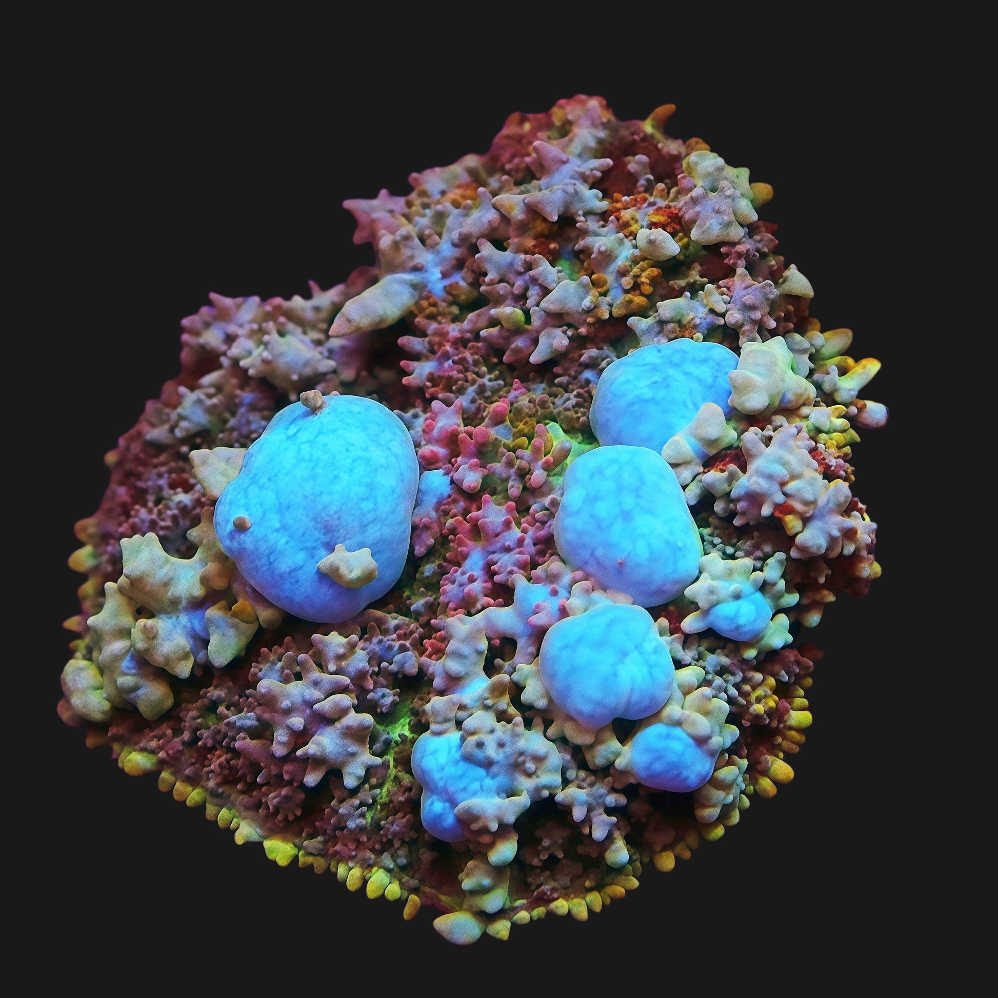 Photos taken under Actinic Radion Mobius (100% UV, 100% Violet, 100% Royal, 20% Blue) using Canon 90D + EF-S 60mm f/2.8 Macro. Color may vary under different lighting.