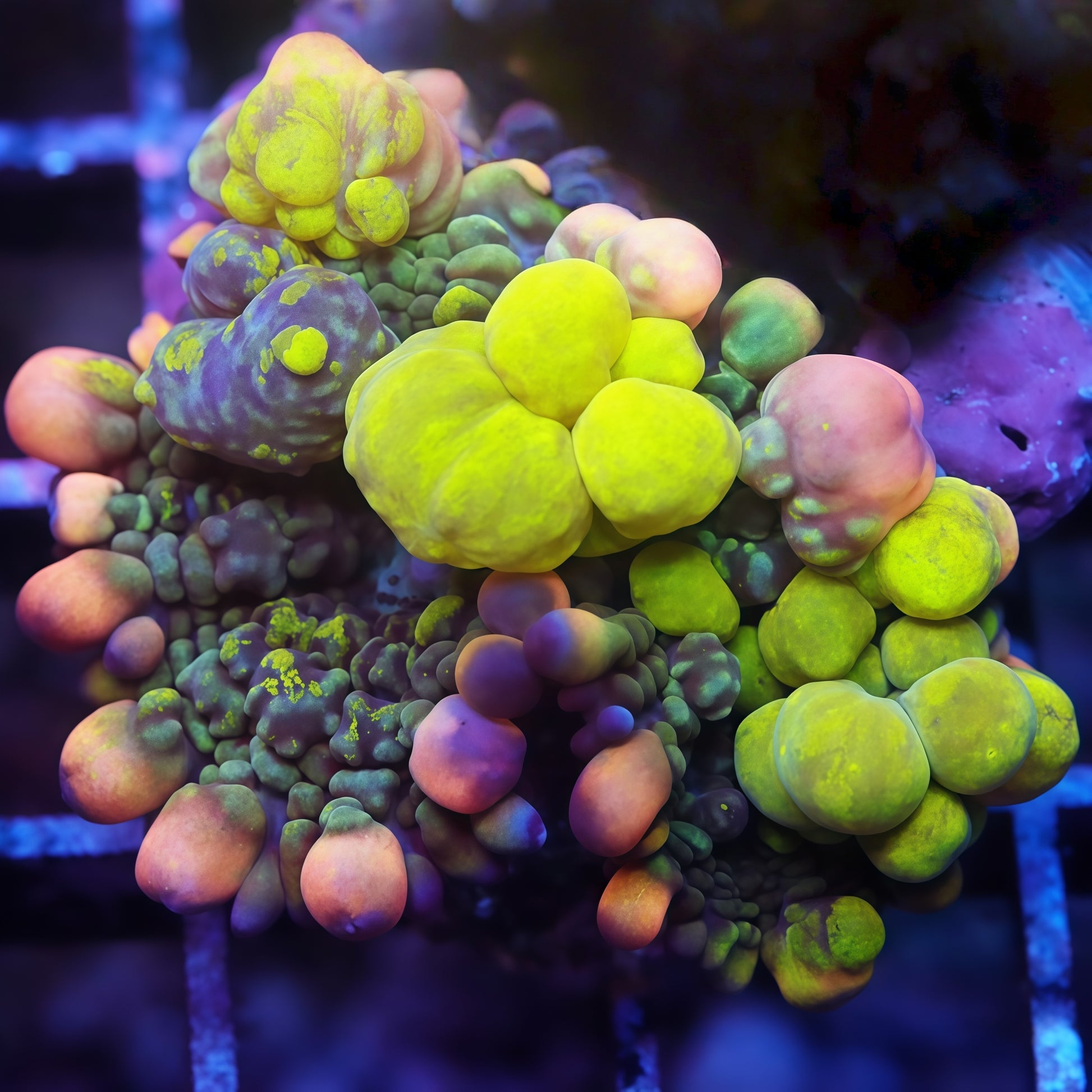 Photos taken under Actinic Radion Mobius (100% UV, 100% Violet, 100% Royal, 20% Blue) using Canon 90D + EF-S 60mm f/2.8 Macro. Color may vary under different lighting.