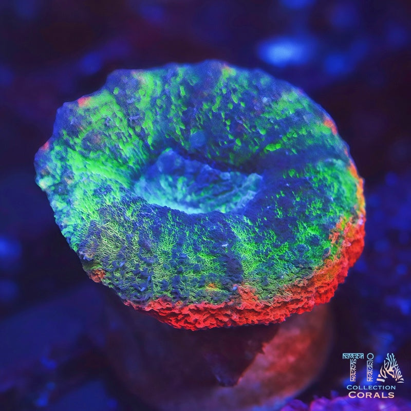Photos taken under Actinic Radion Mobius (100% UV, 100% Violet, 100% Royal, 20% Blue) using Canon 90D + EF-S 60mm f/2.8 Macro. Color may vary under different lighting. Photo labeled with ÒStock ImageÓ ribbon shown for reference Ñ actual frag will be similar in color and size.